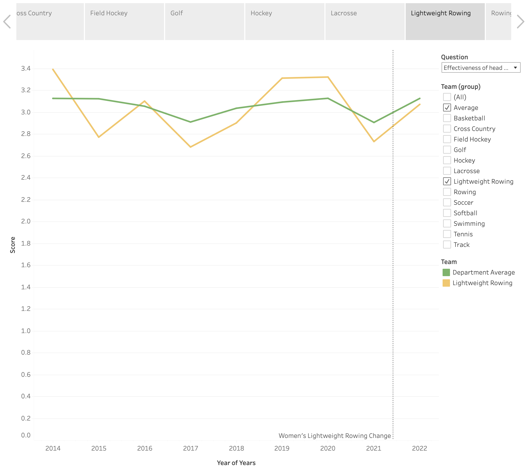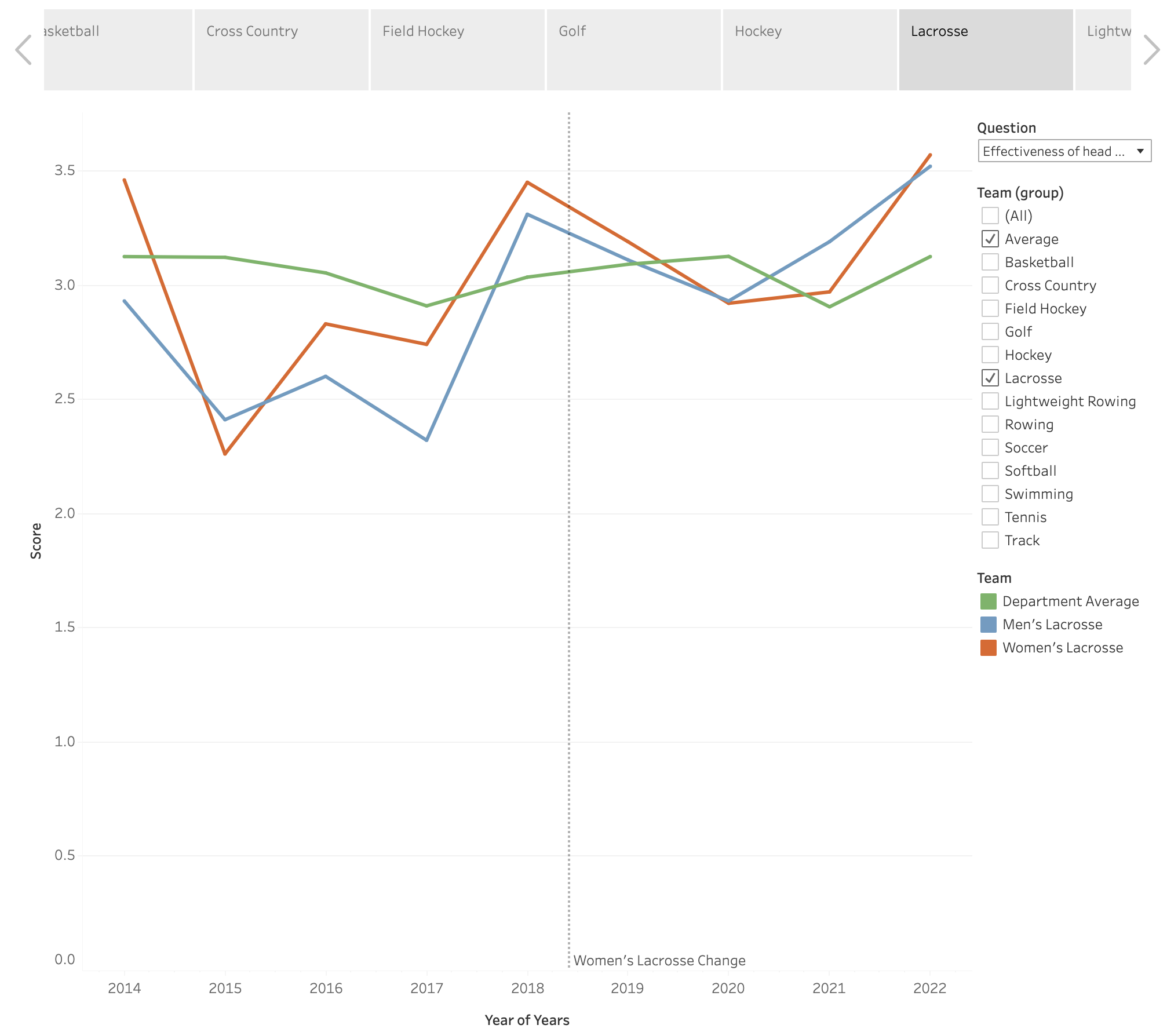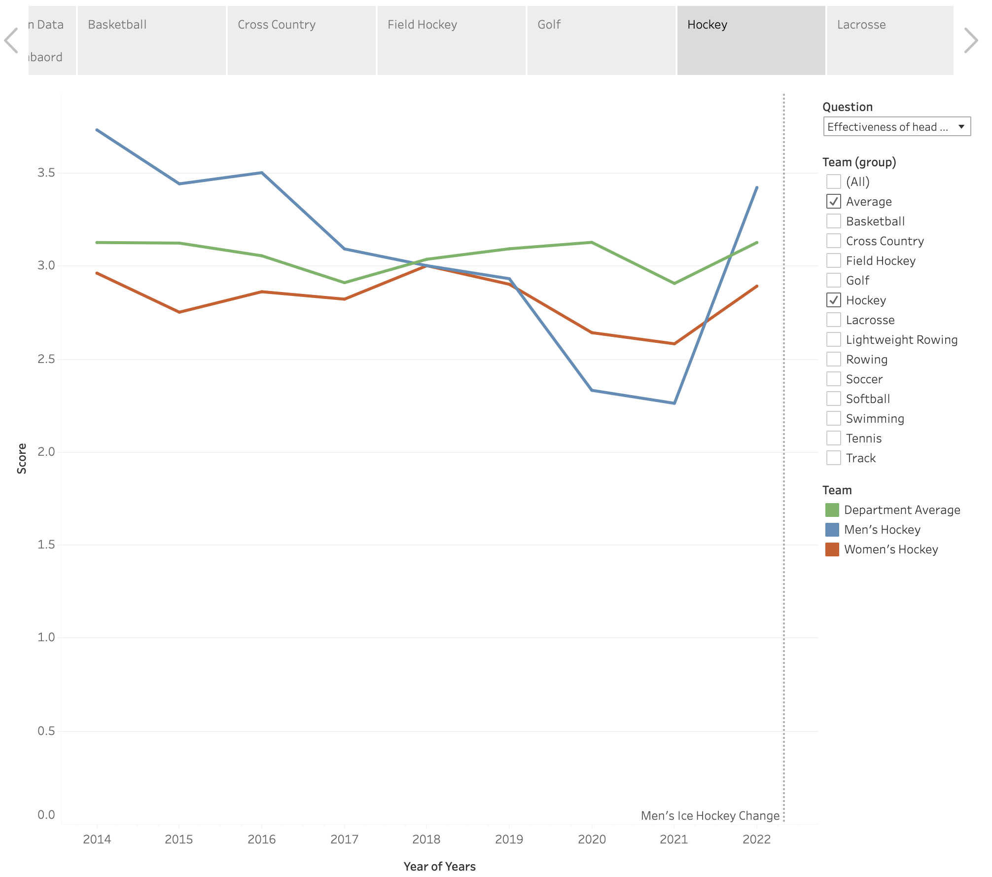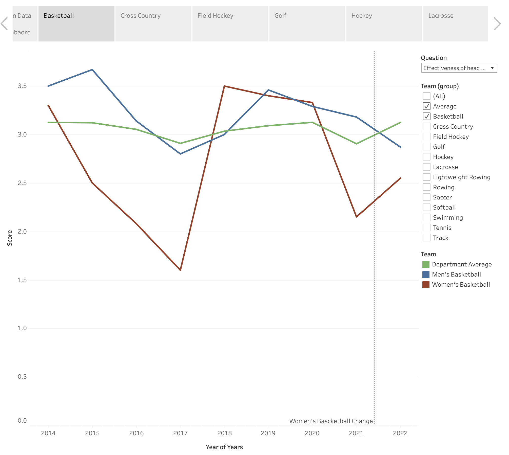- An interactive dashboard to show each individual team’s survey rating and head coach changing history.